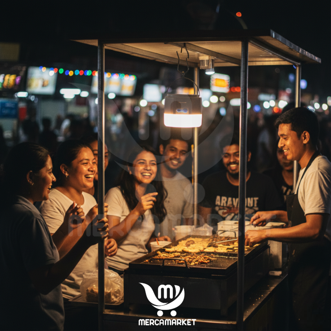 Con panel solar integrado, gancho para colgar y capacidad para cargar tu celular. ¡Ideal para emergencias, exteriores o negocios nocturnos!