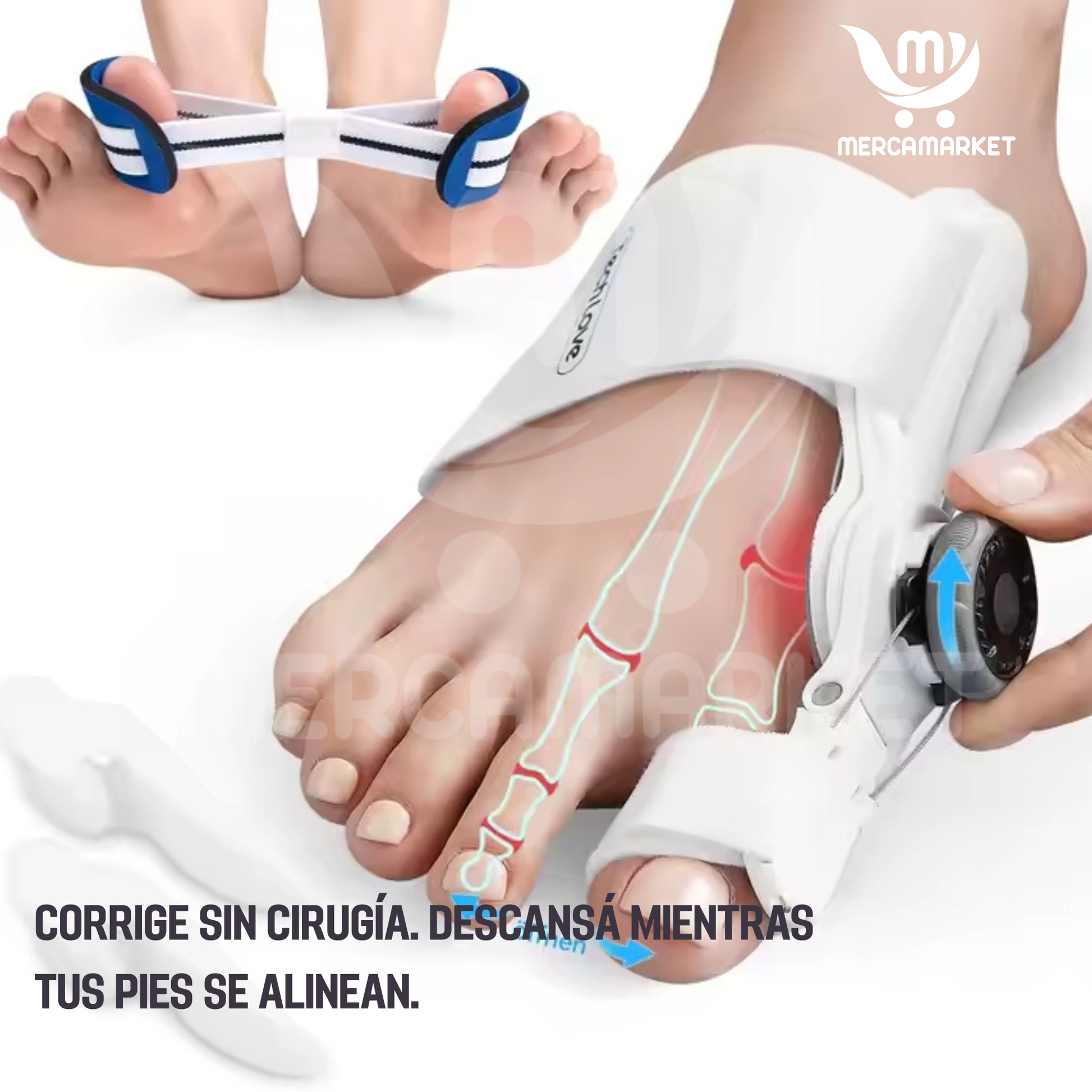 ✨ Corrige sin cirugía. Descansá mientras tus pies se alinean.